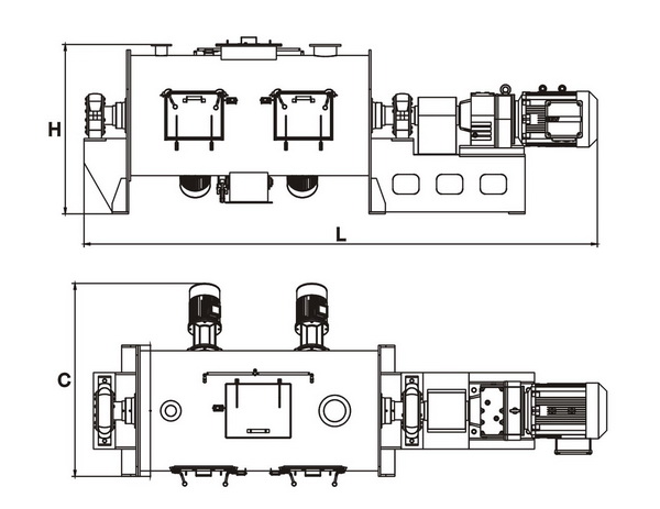 混合机根据物料性质、启动方式、以及搅拌方式配置不同能力、不同功率、不同输出转速的驱动装置。驱动电机选择有:普通电机、防暴电机、变频电机、高效节能电机、高防护等级电机、以及异电压下的电机;常用的减速机:R、K、F系列齿轮减速机、摆线针轮减速机、通用型齿轮减速箱、行星齿轮减速器;常用的连接方式:直联式、皮带轮连接、液力耦合器连接。