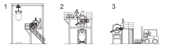 配置3:最简易使用混合设备,直接投料直接放料,配置叉车装卸料;
