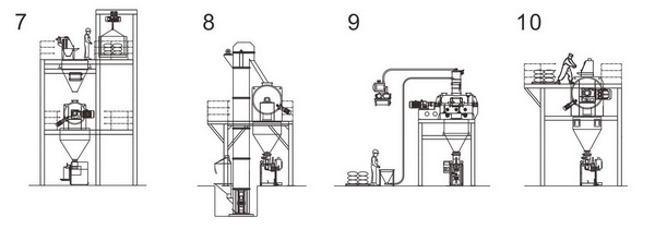 配置1:使用人工投料平台,物料混合后螺旋提升入成品仓,下接包装设备;